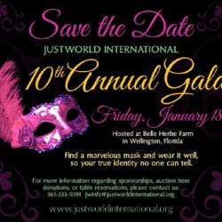 Wellington, Florida – JustWorld International will mark a milestone with its 10th Annual Gala held Friday, January 18, 2013 , in Wellington, Florida, USA. JustWorld International is a not-for-profit, humanitarian organization working as a catalyst for positive change in the developing world by helping impoverished children. Featuring an 18th century Venetian masquerade theme, the 10th Annual Gala will be held at Maria Newman’s stunning Belle Herbe Farm in Grand Prix Village. Guests will spend a glamorous evening guessing the identities of the many masked guests, including the who’s who of the Wellington equestrian and social scene. There will be a special prize offered for the best disguised guest