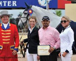 presents an award to Charlotte Jacobs at the FTI Winter Eques-
