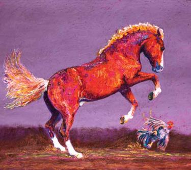 “Barnyard Mayhem” is a painting inspired by a real life experience on Louise’s farm.