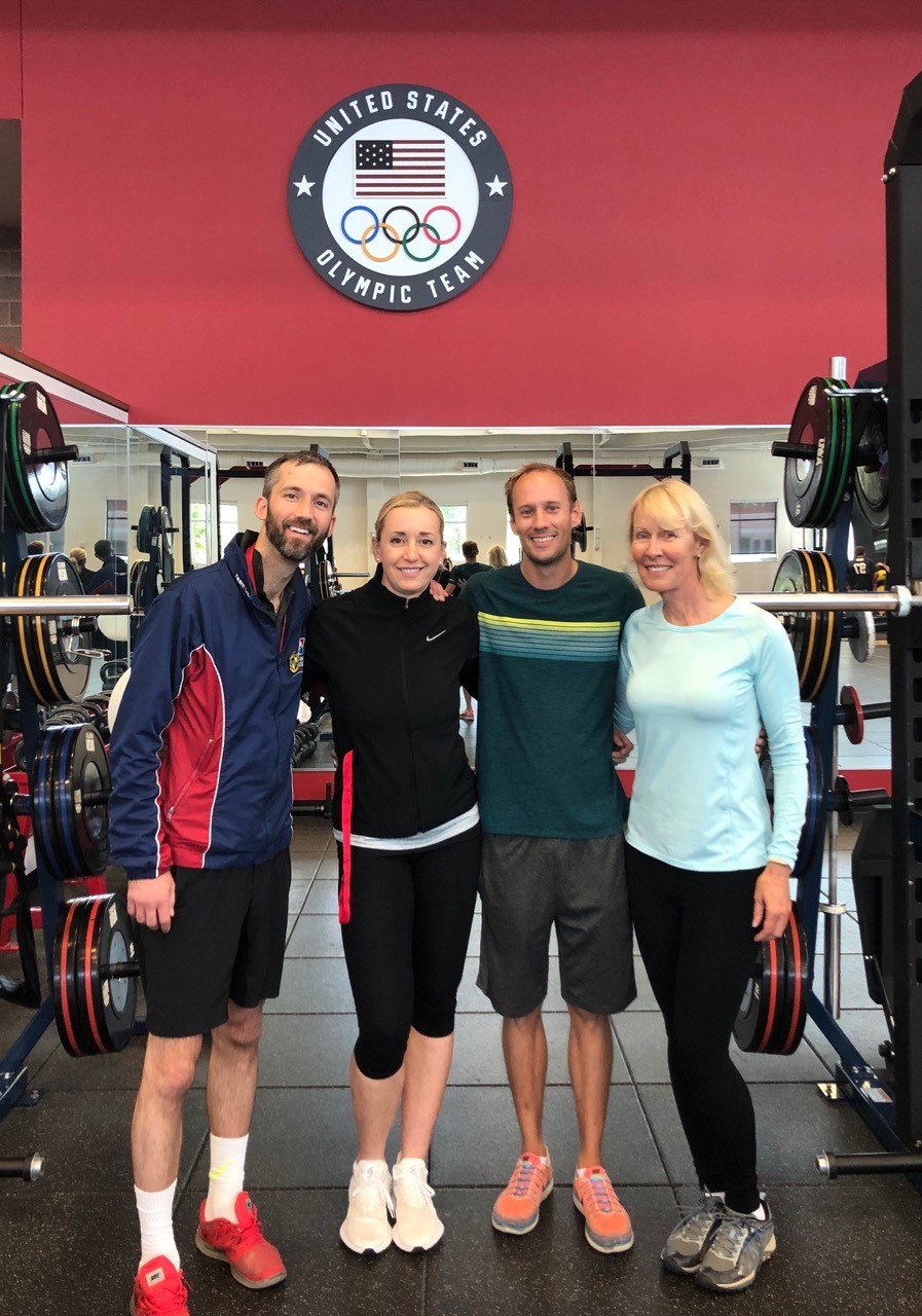 The second day we were mostly in a classroom, but with a lot of interaction and role playing. The last day, we had some time in the classroom, but then went to the Olympic training/fitness center for an hour-long workout. It was such an amazing feeling to be there. At the end of the workout, we got paired up with another coach and had to coach them in our sport. I got paired up with a diving coach from Stanford, Zach Whitaker. He taught me some of the diving poses you take before you jump in. Then I taught him to canter on left and right lead (on foot) and eventually he learned to do the Grand Prix zig zag — the others couldn’t figure out what he was doing.