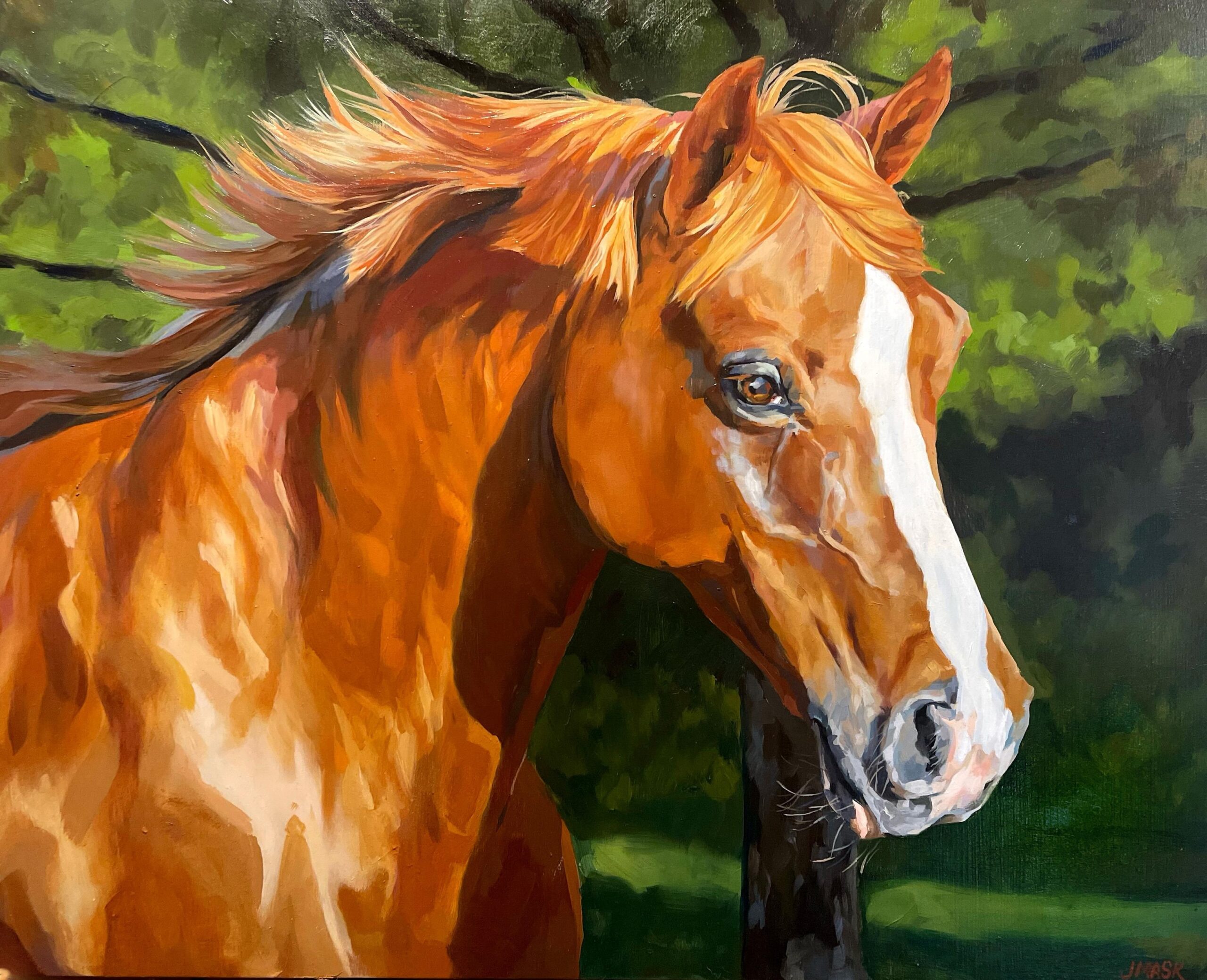 Jacqueline Mask’s equine art spans mediums and disciplines. While finding the balance between her satisfaction as an artist and her career expectations can sometimes be a battle, it’s one Jacqueline is grateful for. Starting with a morning coffee and painting in her home studio, particularly on those 100-degree Houston, Texas, days, she has the flexibility to focus on painting commission work for days at a time while working with her horses in the quieter, cooler, sunset-drenched evenings.
