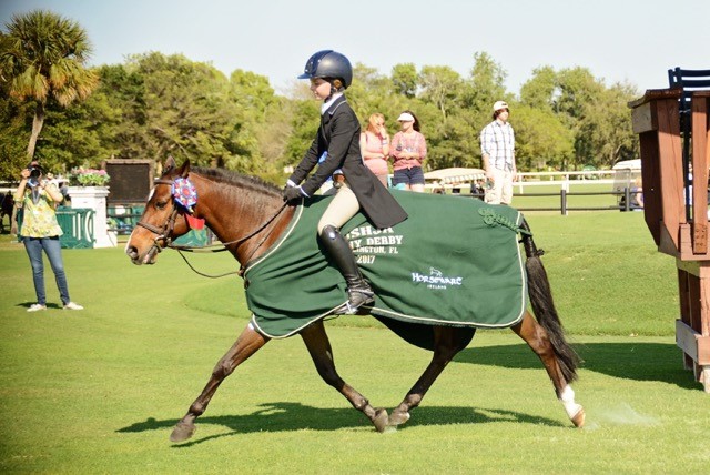 “My goals for riding are to one day get a champion ribbon at Pony Finals, and my really, really, really, really, really long-term plan is to make it to the Olympics,” Kat shared. Having turned 10 just before Pony Finals this year, Kat’s resume already proves she’s got what it takes. In 2017 alone, she has a wealth of tri-color ribbons from Atlanta A and AA shows; earned multiple ribbons at Devon; was WEF Circuit Champion for green pony hunter and 11 & under equitation, as well as Champion in the medium pony division; won the $5,000 USHJA Pony Hunter Derby in week 9 at WEF followed by the $10,000 USHJA Jr/Amateur National Hunter Derby the next day; and finished fifth of 174 competitors in the Marshall & Sterling USEF Pony Medal Final. Kat is currently the USHJA’s most winning Pony Derby Rider in the country.