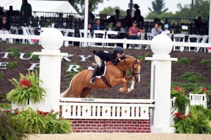 In fact, when Kat’s not at school or riding, she can usually be found jumping anything she can find on foot — including in the house. Her heart truly is in jumping — and with her ponies. Though she can be shy, all one needs to do is get Kat talking about her ponies to see that she’s still a little girl who truly loves her ponies — and has a mature determination to ride them to the best of her ability. “I own four ponies and a horse,” she said. “High Noon 3E, Captain America, Goldhill’s Arresting Charm, Chic In Time and Finesse RF. Charm is the sweetest — he loves to cuddle.