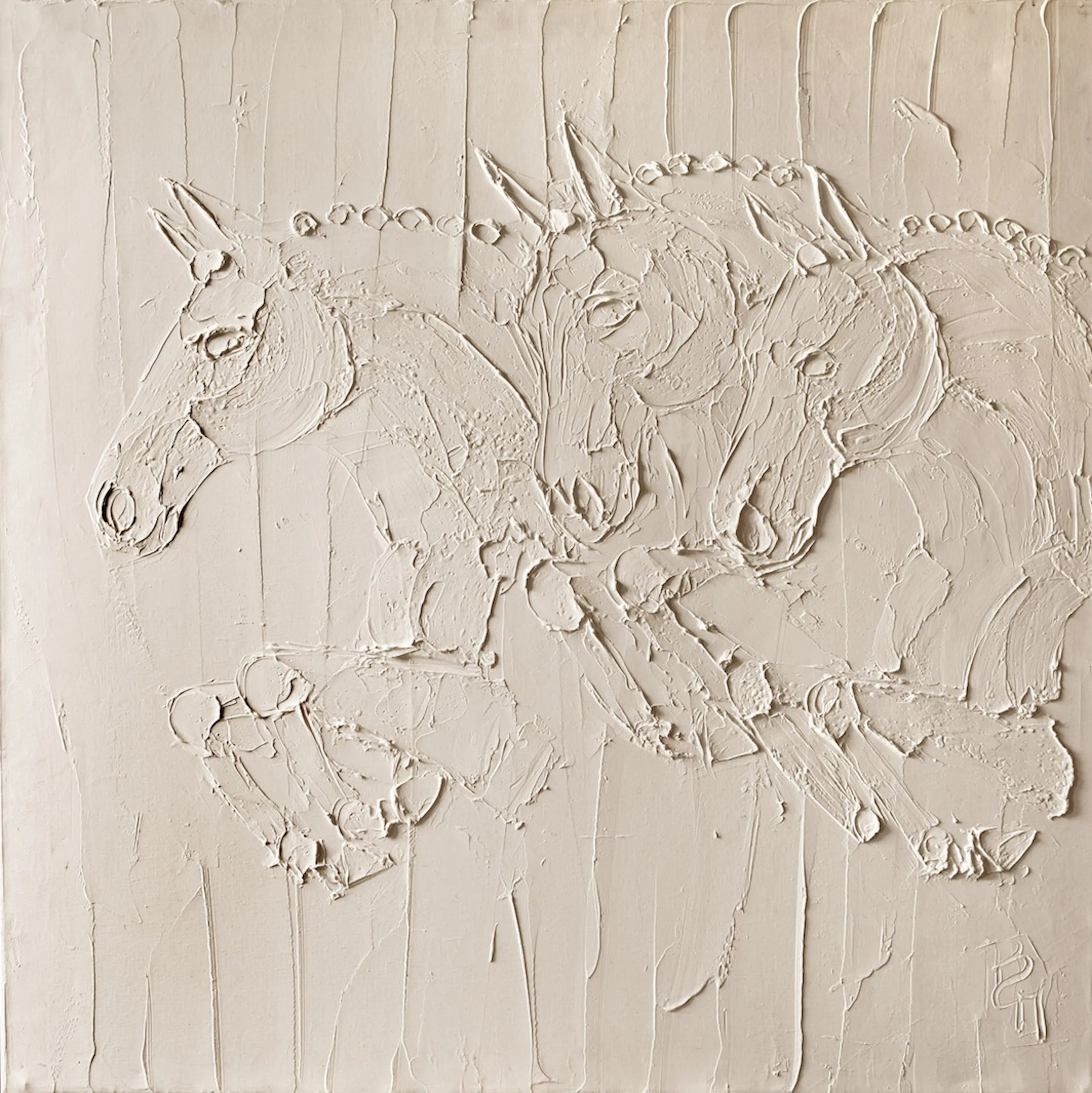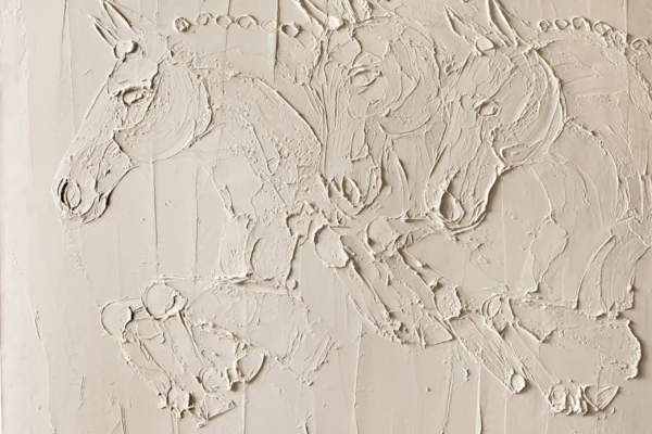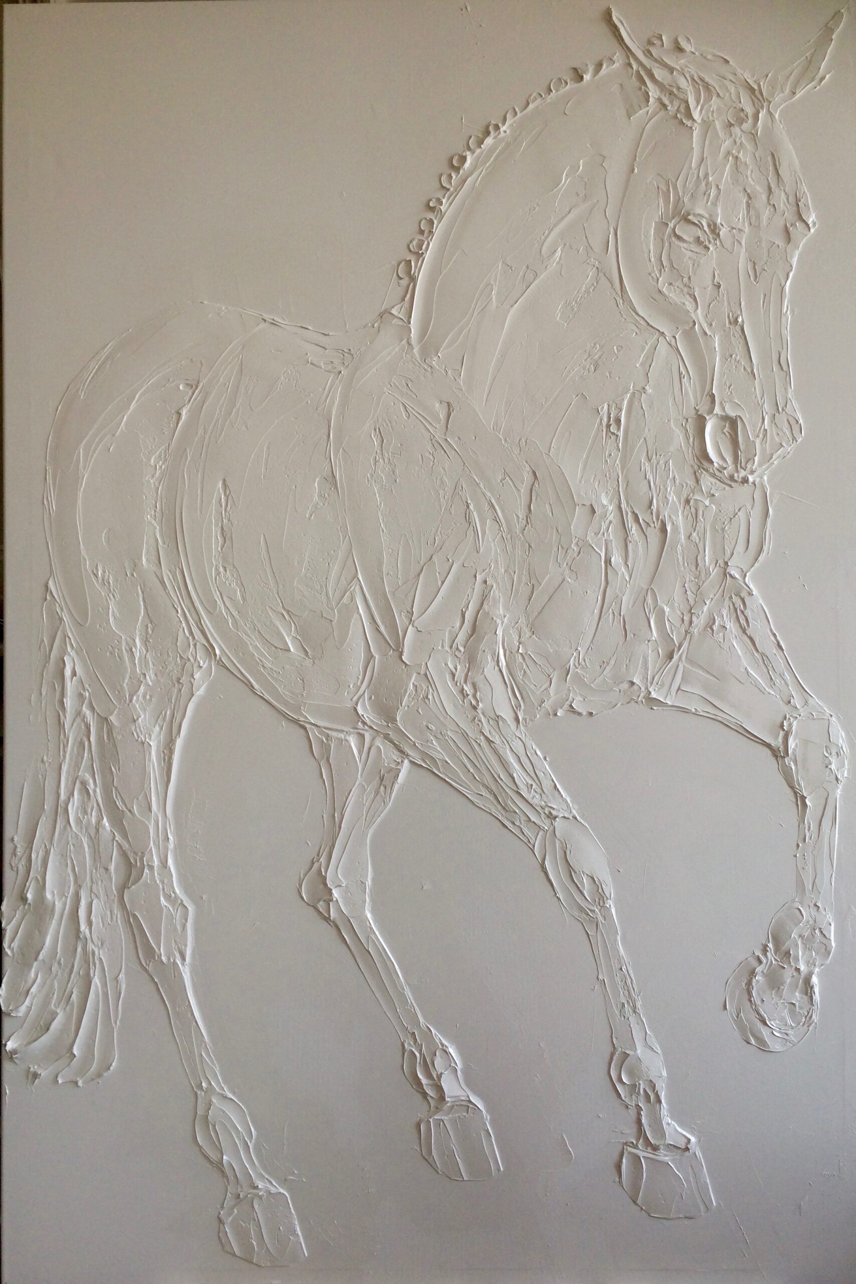 I am a mixture of a sculptor and a painter. My technique consists of mixing titanium white oil paint in very thick layers in order to create a strong relief, playing with shadow and light. I started doing this technique by first applying thick layers of oil paint on the canvas and sketching in the images. This technique later led to applying a thin coat of paint on the surface and then applying a thick empasto layer of paint sculpted on top. The more paint applied, the more an image stands out. It’s similar to the bas relief that can be found in the limestone and marble on numerous cathedrals and monuments from around the world. I wanted to make those images transportable and give them eternal life through oil paint.