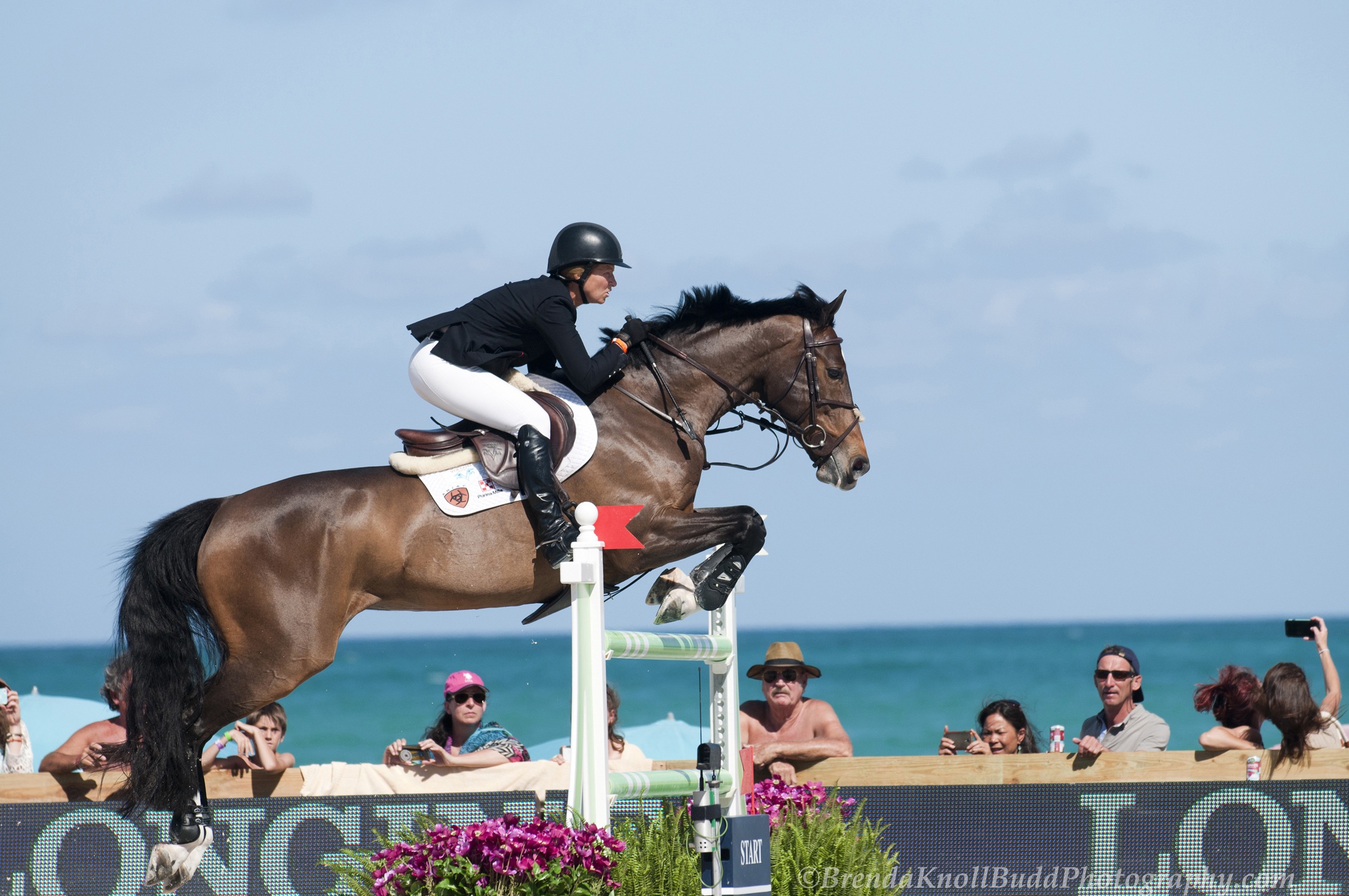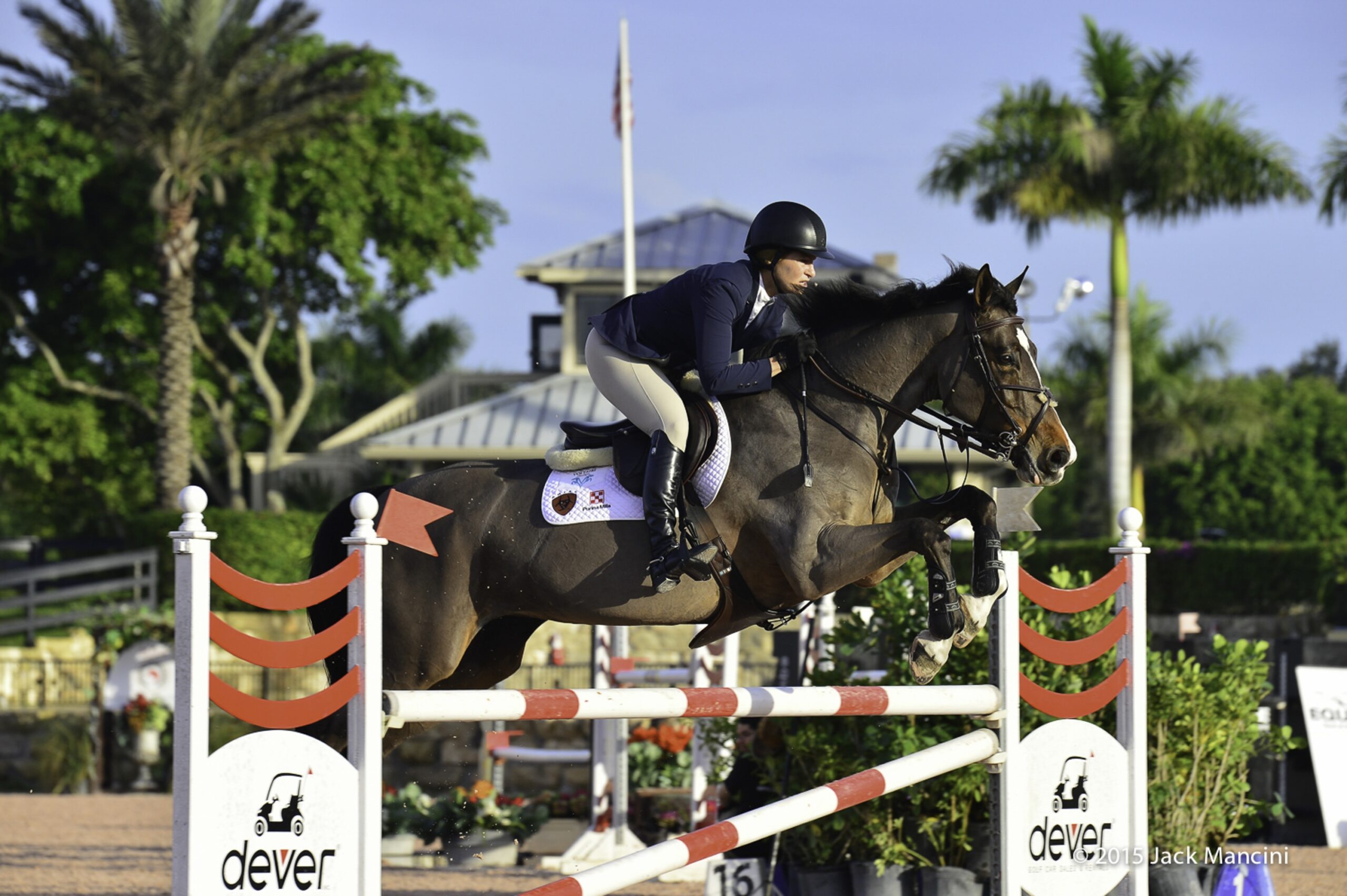 Beezie has ridden many talented horses. Among them are Cortes ‘C’, nicknamed Tiny, a huge black Belgian Warmblood gelding who crosses his front legs when jumping, and Simon, a Dutch Warmblood gelding and 2013 USEF International Horse of the Year.
