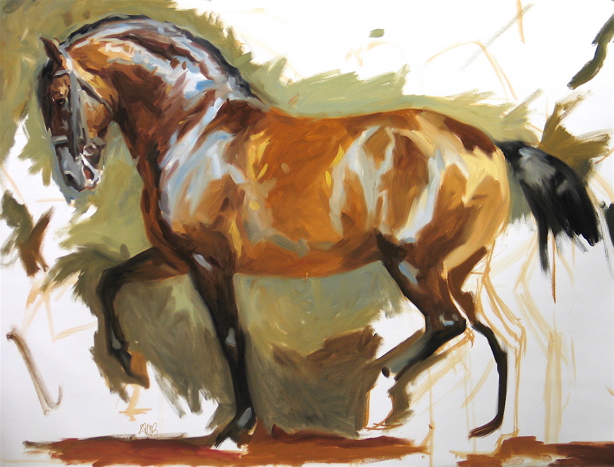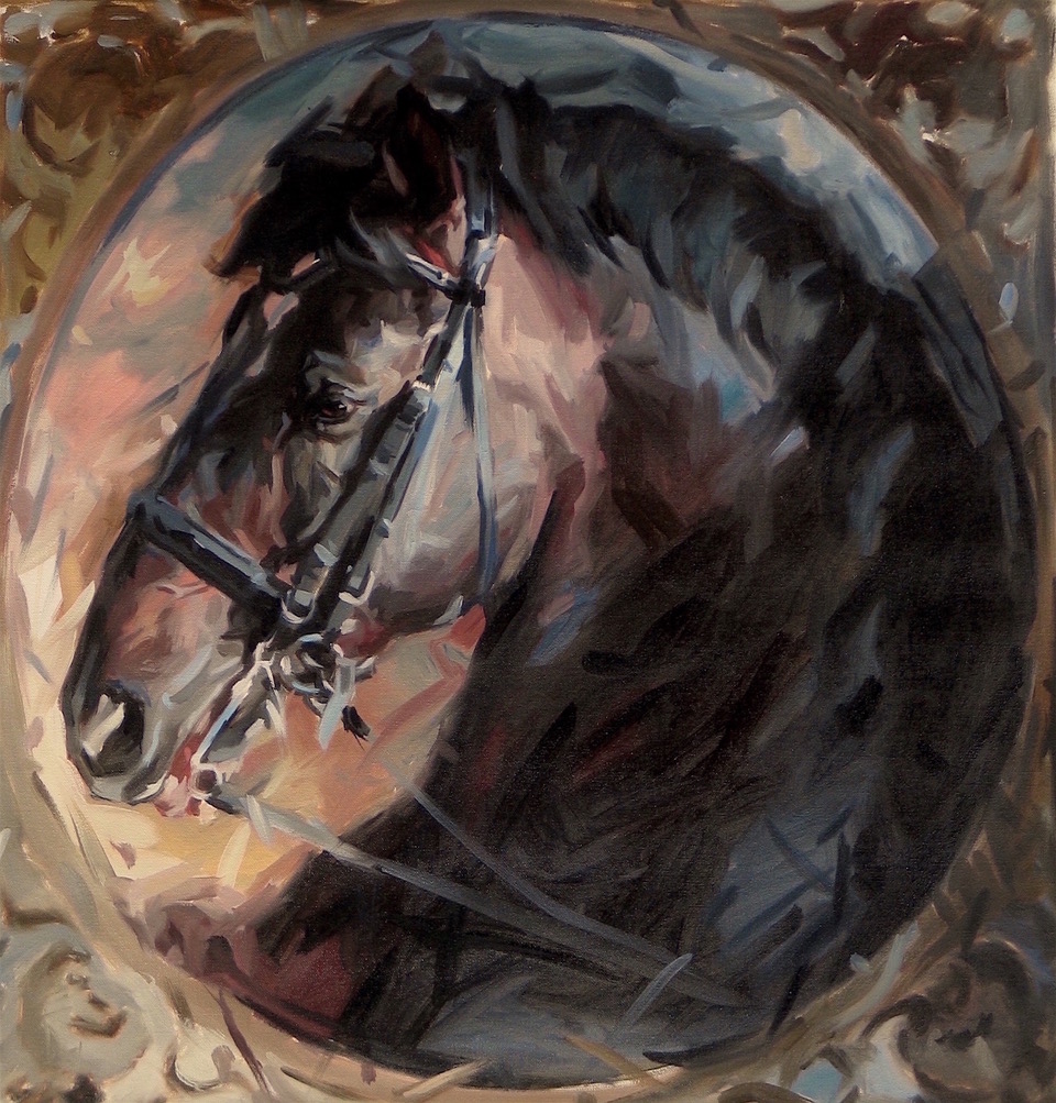 Despite the fact that Anthony didn’t have the opportunity to spend time in the stables as a child, his affection for the horse only grew. As a young painter, his equine knowledge increased, as did the time he spent in the stables. “I’ve spent an extended amount of time over the years visiting stables, horse shows, chatting it up with knowledgeable horse people and just spending lots of time around these glorious creatures.”