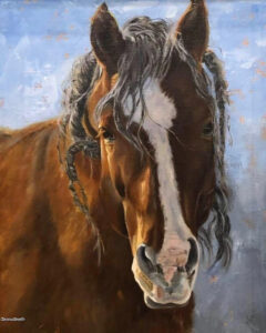 Studying to become a dental hygienist seems an unlikely path to becoming an equine fine art painter, but for Donna Smyth of Temecula, California, it has been both a practical and colorful journey. Donna, an oil painter with a soft spot for wild horses, describes her style as realism with some abstractism. “I don’t want to paint a photograph; I want to interpret and put a little sentiment into it.”
