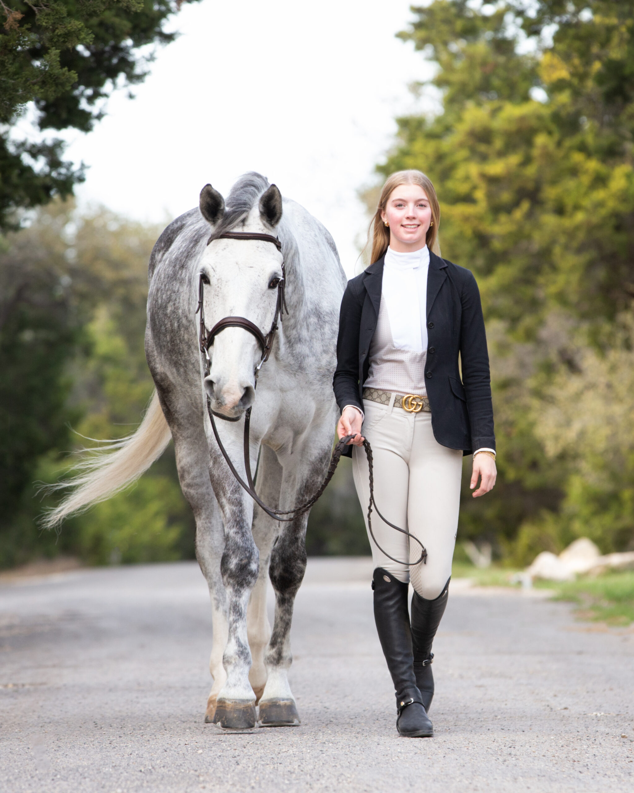 In July 2024, Ellie, Brooke and Colleen were browsing an online horse auction during some downtime at the Kentucky Summer Festival. “Colleen and I locked in on a grey dappled gelding named Ton Amie, a 2019 Belgian Warmblood,” Ellie said. “We bid on him and won.”