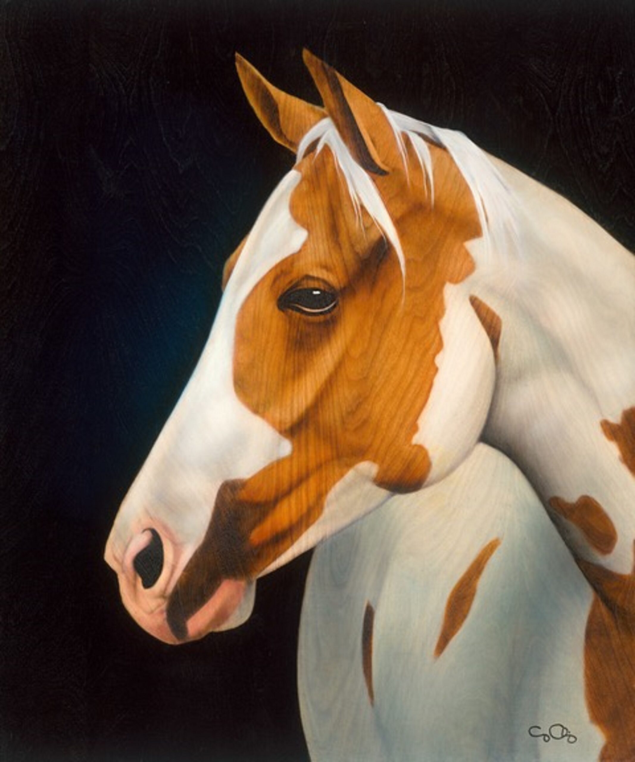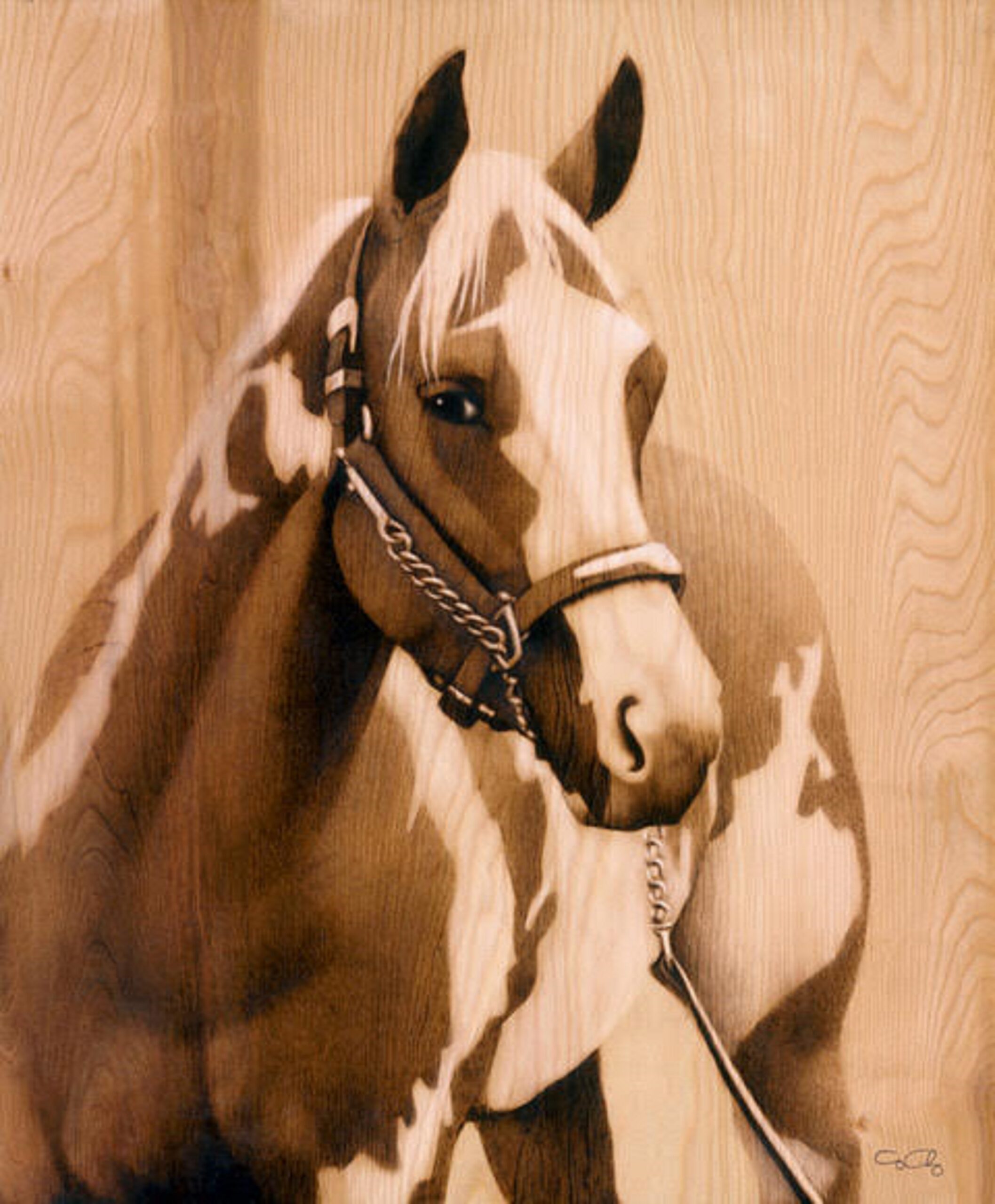 Up until this point, George had primarily been creating oil paintings. Once he rediscovered pyrography, it seemed like a natural fit to add oil paint to his pyrography artwork. “I feel that sometimes you can’t tell the whole story of the horse in an image without including the color, because sometimes it’s a big part of their personality and who they are.”