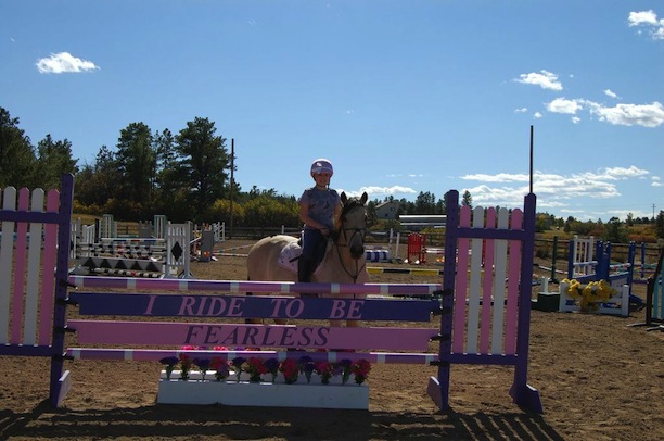 “Avery was totally not your typical kid. She was an old soul, insightful and very intuitive with animals,” stated Rochelle. “In a lesson she was great. She tried super hard to do everything I taught her. When she wasn’t riding, she would make courses and jump them on foot. She made arenas in her living room, too, and practiced whatever we had been doing in the lesson. I taught her to post without stirrups. She caught on fast. Avery was really easy to teach and willing to do whatever it takes to be a better rider. She hung out with her pony, grooming and washing him. She loved pink and purple accessories for her and the pony. Avery was cool to have around.”