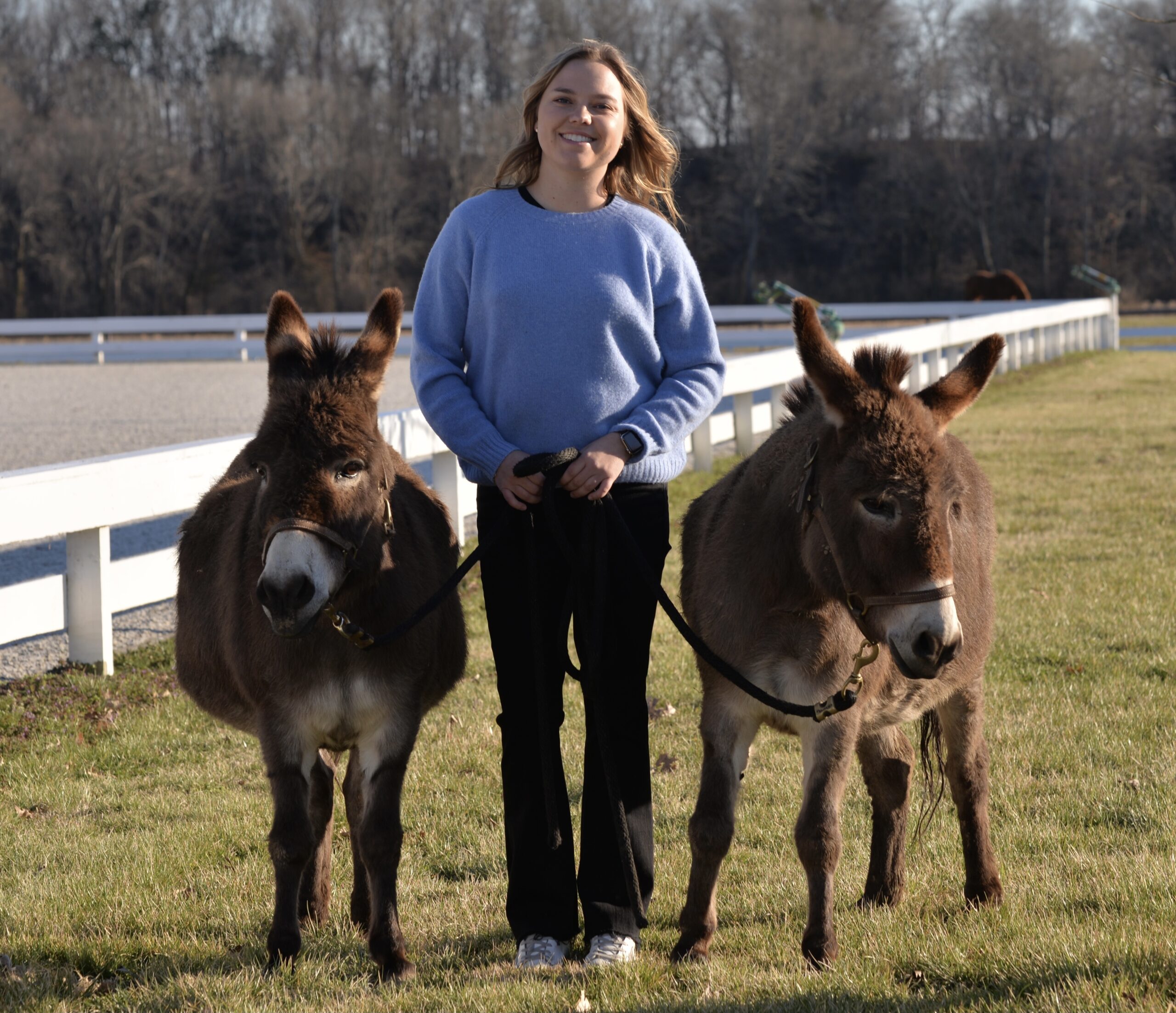 Martha with donkeys Petunia, left, and Lilly.