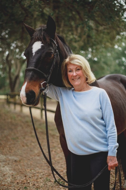 Melinda, who is 85 years old, is an active rider. While her career, marriages and children may have kept her out of the saddle for 35 years, she now rides three to four days per week. In spite of her age, she still jumps crossrails at Seabrook Island Equestrian Center located on Seabrook Island, South Carolina. She describes the clients and friends at Seabrook as being more like her family, and she especially admires her trainer, Charles Hairfield. “Over the years, I’ve watched Charles grow as a trainer. He is my mentor and really takes care of me,” she said.