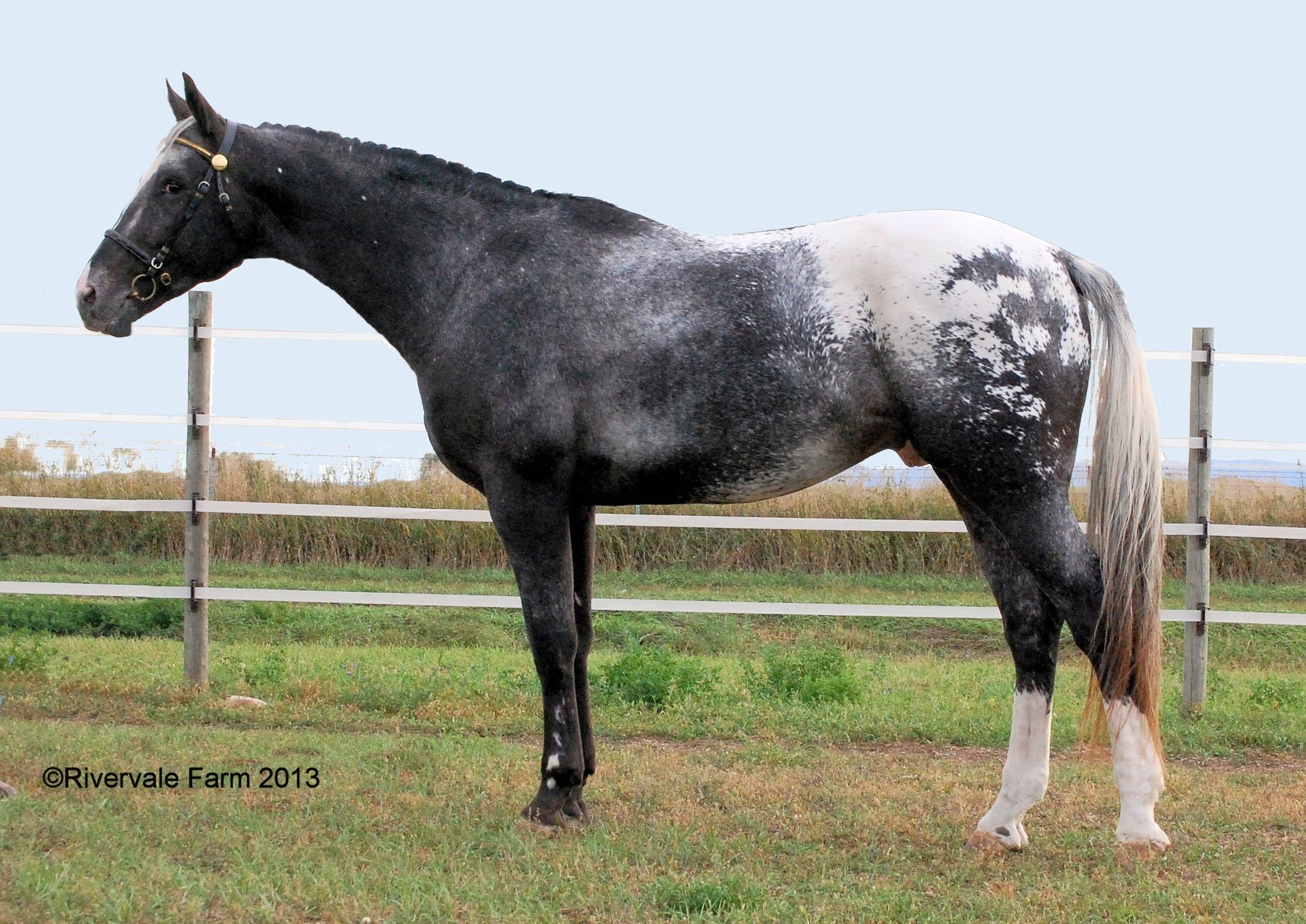 Our program is based on crossing the Appaloosa stallion BJC Asher Seven with warmblood mares. Our warmblood mares are mostly daughters of Meisterwind (Trakehner) and Lion King (Hanoverian). Asher has no stock horse breeding, he is Foundation Appaloosa and Thoroughbred. He is 16.3-hands and wears a size 2 shoe. He has several offspring competing in eventing and is also the sire of the Appaloosa Horse Club National Champion 50-mile Endurance Horse RF Abstract, ridden by Jeremy Reynolds. We’ve also produced a few Appaloosa Sport Horses by our warmblood stallion Lion King, out of Appaloosa mares. One of those, RF Let’s Tell Secrets, is the 2022 USDF All Breeds ApHC Champion at Training Level.