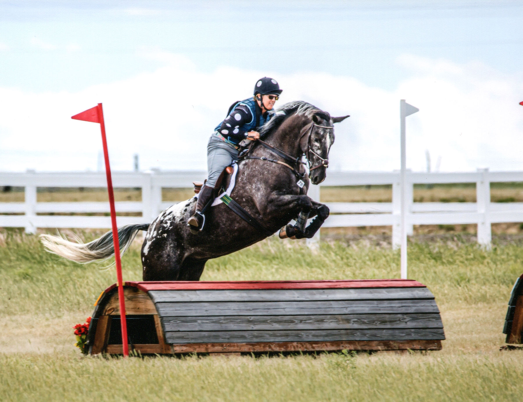 Our program is based on crossing the Appaloosa stallion BJC Asher Seven with warmblood mares. Our warmblood mares are mostly daughters of Meisterwind (Trakehner) and Lion King (Hanoverian). Asher has no stock horse breeding, he is Foundation Appaloosa and Thoroughbred. He is 16.3-hands and wears a size 2 shoe. He has several offspring competing in eventing and is also the sire of the Appaloosa Horse Club National Champion 50-mile Endurance Horse RF Abstract, ridden by Jeremy Reynolds. We’ve also produced a few Appaloosa Sport Horses by our warmblood stallion Lion King, out of Appaloosa mares. One of those, RF Let’s Tell Secrets, is the 2022 USDF All Breeds ApHC Champion at Training Level.