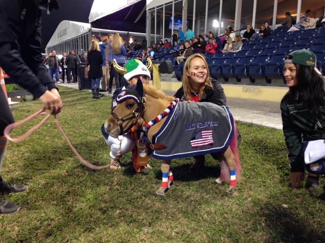 If you’ve attended a Saturday Night Lights Grand Prix at the Winter Equestrian Festival, you shouldn’t be surprised to see a crowd of people gathered around a very small horse with a pink mane and tail and a huge personality. That little horse is Peeps: a miniature horse with dwarfism, and the spokesmare for the Peeps Foundation.