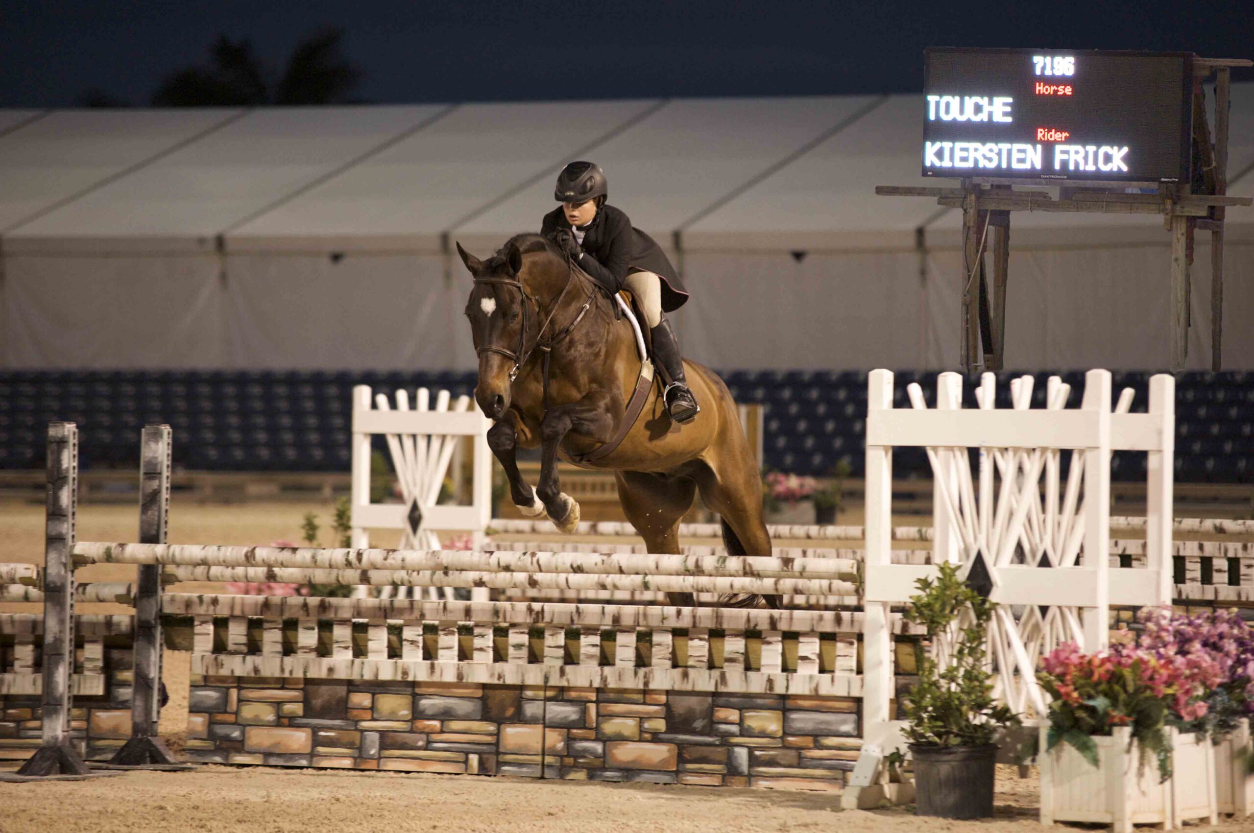 Kiersten Frick, of Loxahatchee, Florida, rode Touché to the ESP Circuit Children’s Hunter Grand Championship in Wellington. Kiersten and Touché also took their first spin in the International Ring (under the lights, no less) in the $5,000 Hunter Classic. (pictured). Great work Kiersten! Photo by Mancini Photos