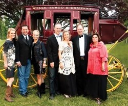 MALVERN, Pa.— An enthusiastic crowd of 235 enjoyed cocktails, dinner, a live auction and dancing to the band Sugarfoot Farm during the Black Tie and Boots Ball at Bryn Clovis, Brushwood Farm in Malvern on Saturday, May 5. The Ball benefits the Devon Horse Show and Country Fair, and the live auction alone raised over $16,000. Wells Fargo is the Presenting Sponsor of Devon, and its signature stagecoach was situated on the lawn adjacent to the brightly lit and decorated tent, with many of the guests taking advantage of that to have their pictures taken standing beside it