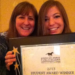 April and Sidelines editor Jan with April’s award. By Dani Moritz I saw this post from American Horse Publications today and I just had to share it with everyone