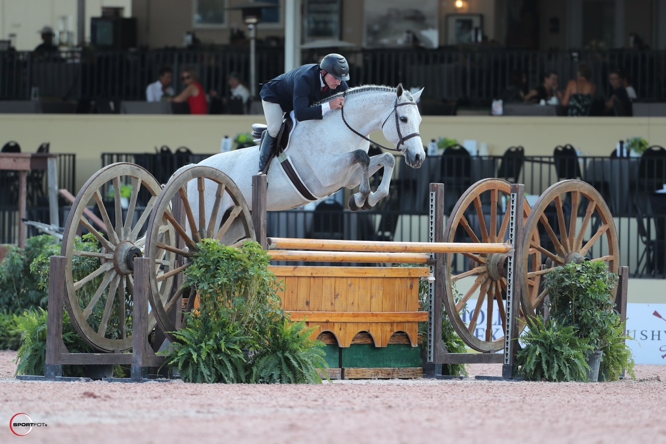 Rob Bielefeld competing Jackman, owned by Britain Bailey and Bailey Mews, at WCHR in Wellington, Florida.